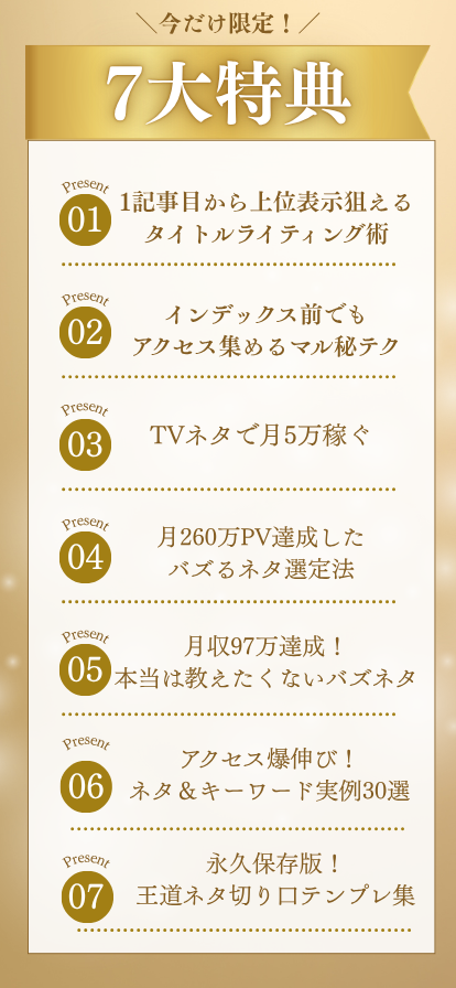 さらに‥本教材を購入していただいた方限定の超豪華7大特典付き!