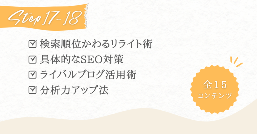 ツールの使い方やブログの立ち上げ方もわかりやすく解説しています。実際に私の生徒さんでもタイピングが苦手な方がいましたが、今では1日3記事書けるまでに成長しています。 - 本業や子育てしながらの実践になるので時間が上手く使えるか不安です。
