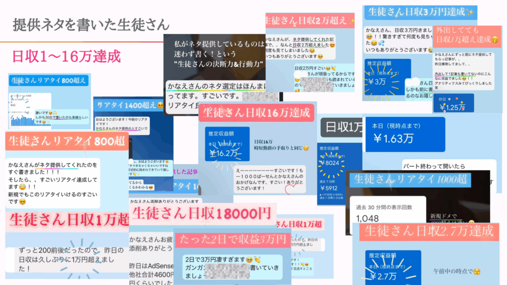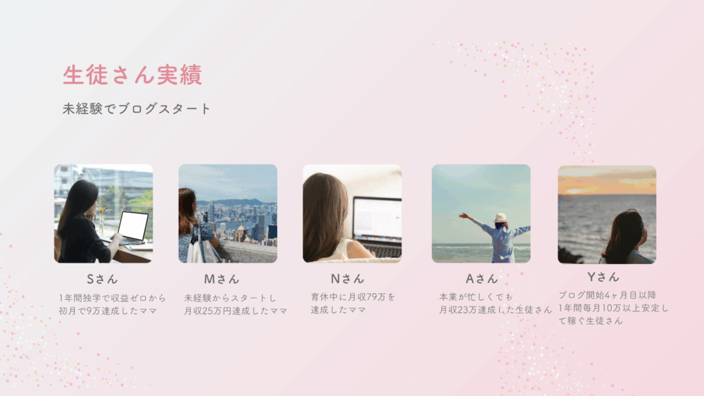 この教材を使ってブログに取り組んでいる方は、仕事や子育てをしながら実践し成果を出しています。