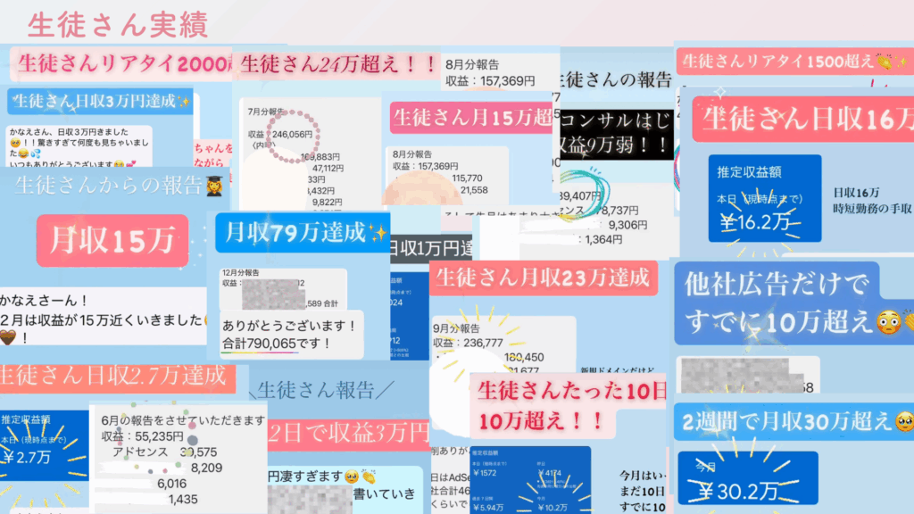 - ブログ開始4ヶ月目で1年間毎月10万以上安定して稼ぐ生徒さん